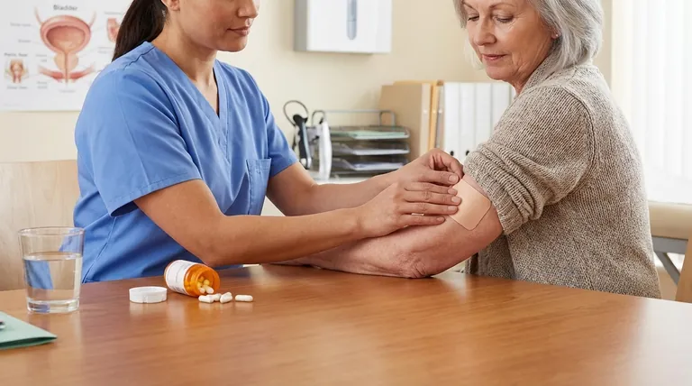 - Kosten und Zugänglichkeit:Pflaster können in einigen Regionen teurer oder weniger leicht verfügbar sein als orale Formulierungen.